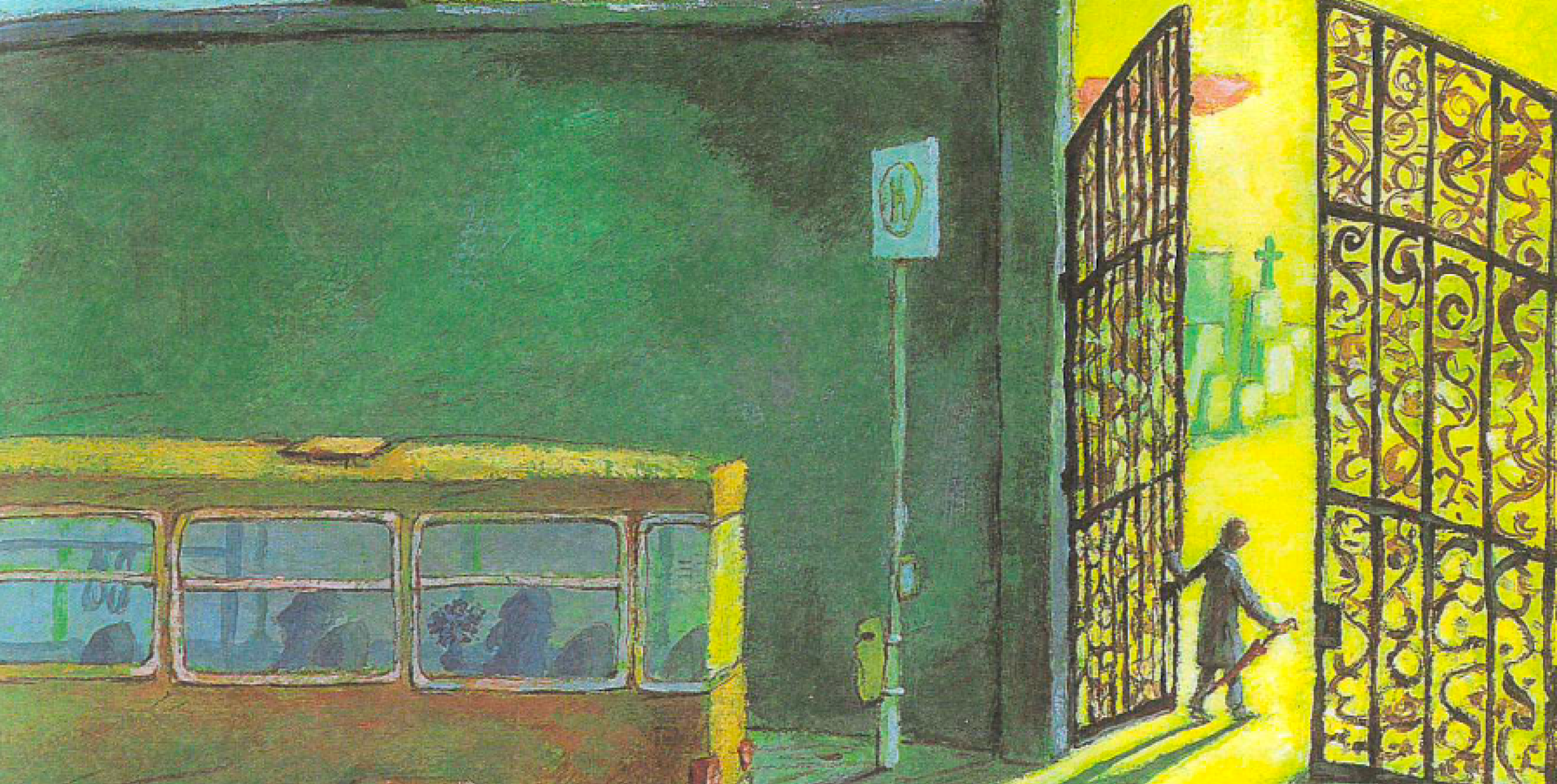 Ein alter Mann sitzt in einem Bus. In seinem Arm hält er einen wundervollen Blumenstrauß. Eine junge Frau kann ihren Blick nicht von der Blumenpracht lassen. Immer wieder schaut sie zu den bunten Blumen. Kurz vor der nächsten Haltestelle erhebt sich der Mann und geht zu der Frau. „Gefällt Ihnen der Strauß?“ Er reicht ihr die Blumen und sagt: „Er ist eigentlich für meine Frau. Aber ich denke, sie hätte gern, dass Sie ihn bekommen. Ich gehe nun zu ihr und erzähle ihr, dass ich Ihnen die Blumen geschenkt habe.“ Dankend und erstaunt nimmt die Frau den Strauß entgegen. Als der alte Mann aussteigt, sieht sie ihm nach. Er verschwindet durch ein Tor, das auf einen kleinen Friedhof führt...