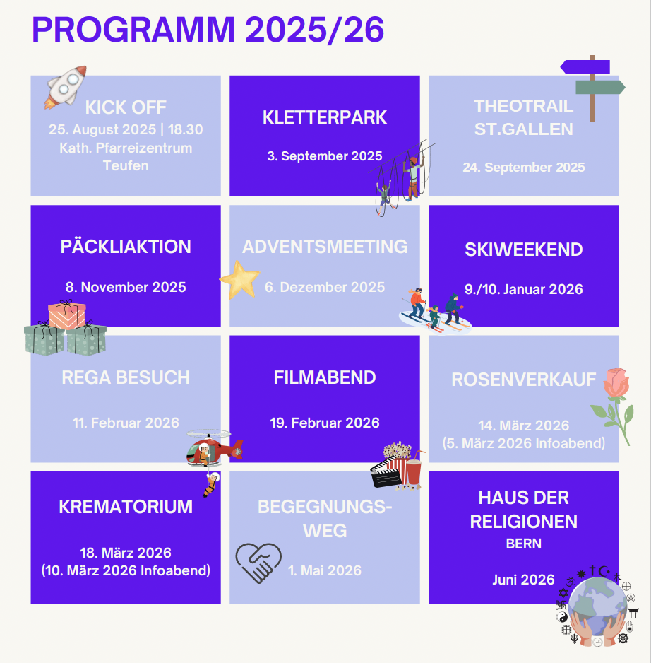 Statt traditionellen wöchentlichen Lektionen erleben Jugendliche den Glauben durch abwechslungsreiche und lebensnahe Projekte – direkt verbunden mit eurer Welt. Folgende Highlights stehen bereit: