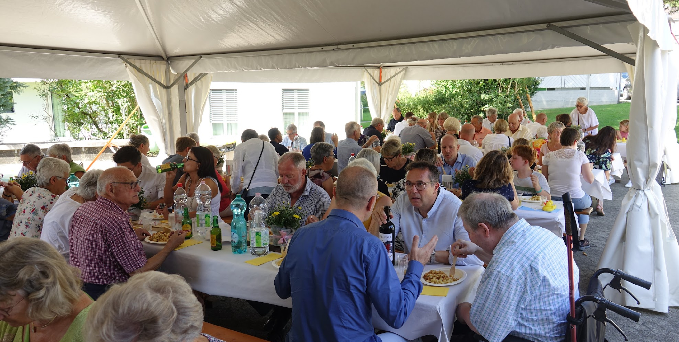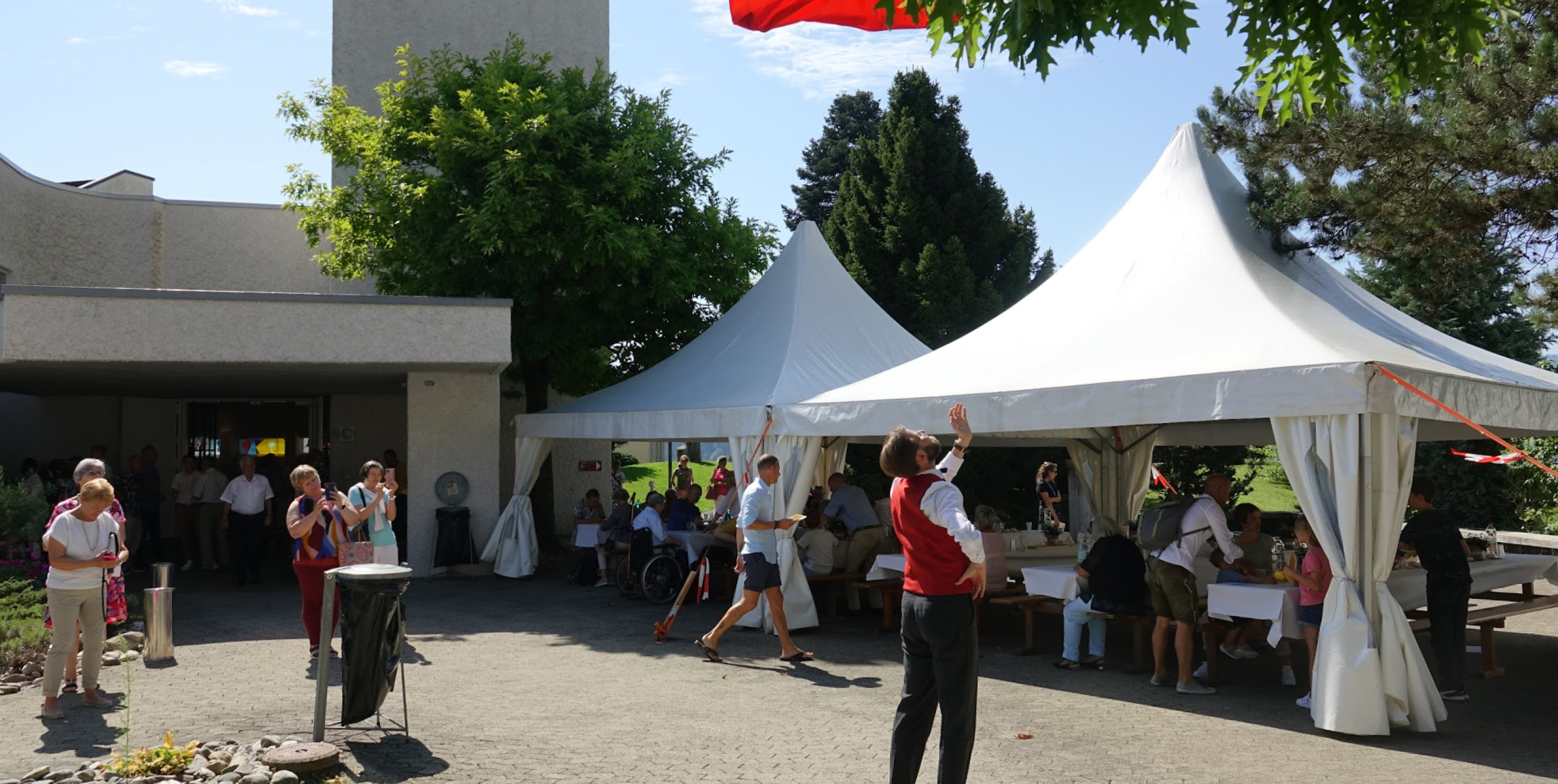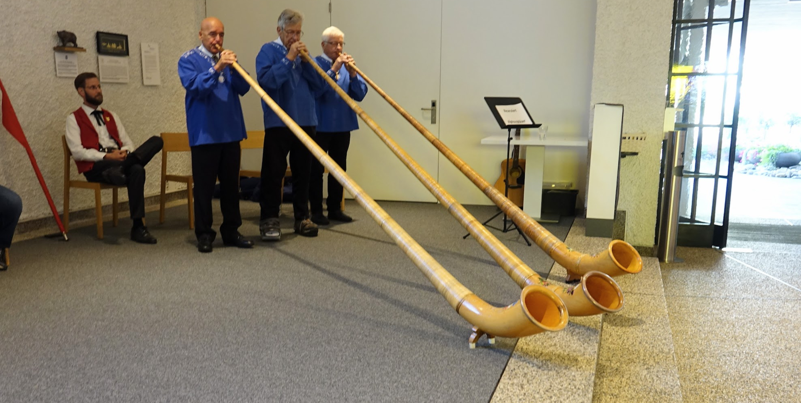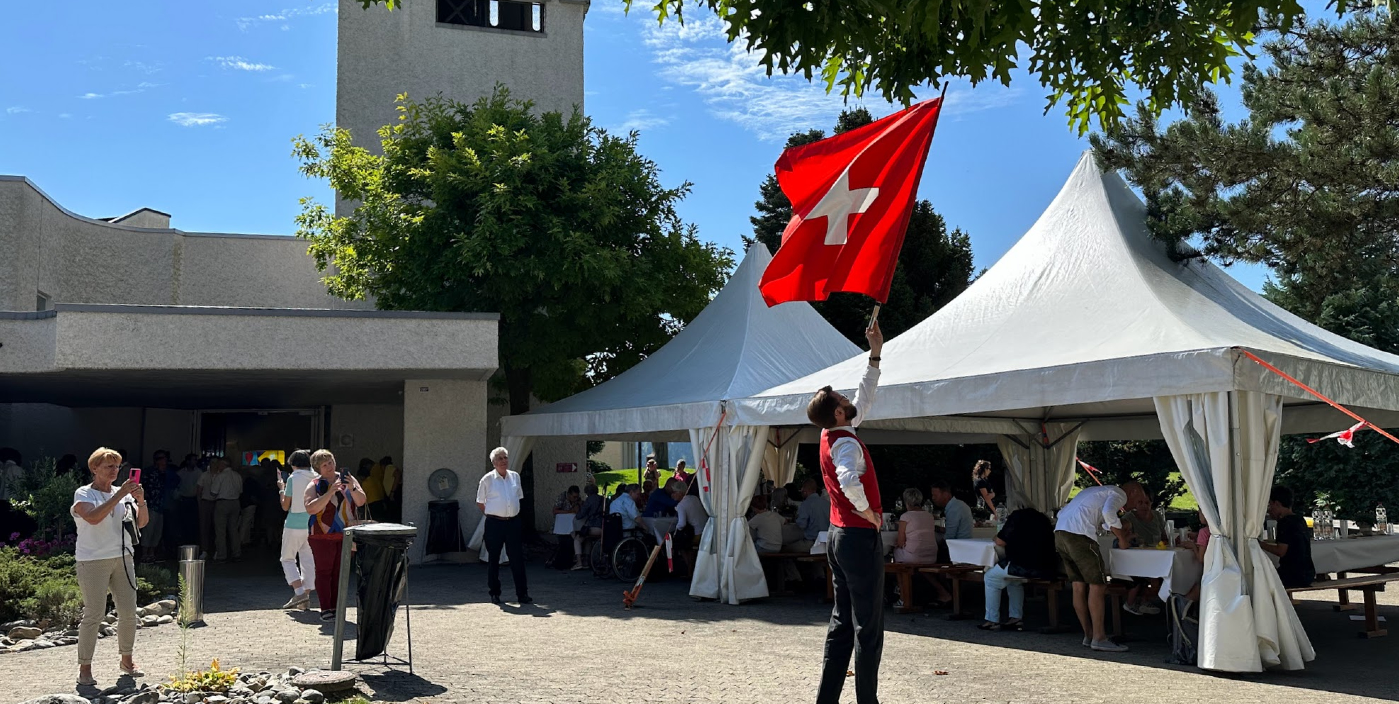 Im Anschluss wurde ein feiner Imbiss serviert, und die Besucherinnen und Besucher kamen nochmals in den Genuss der Alphornklänge und der Fahnenschwingerkunst.