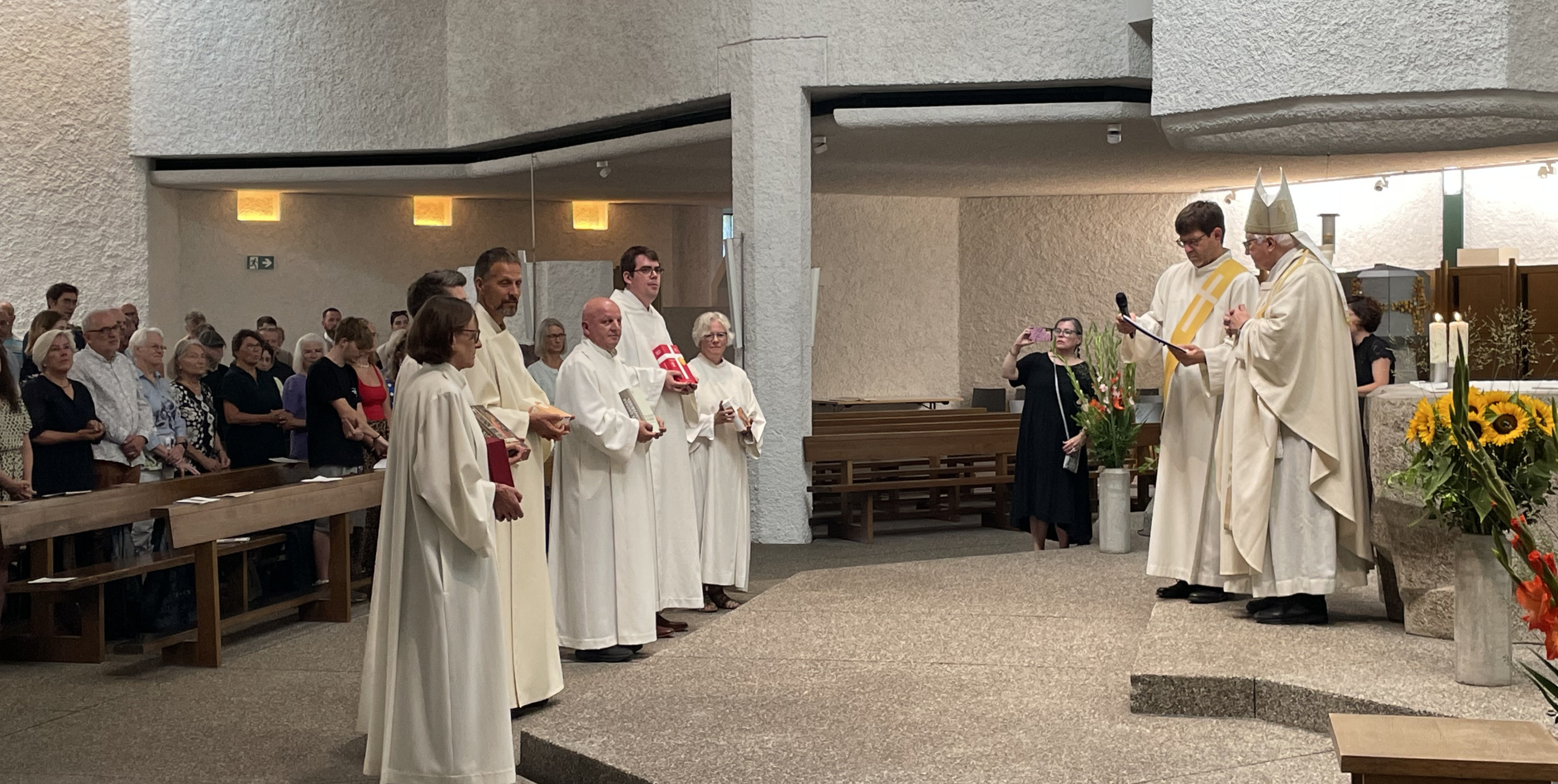 In einer eindrücklichen Feier in der Kirche St.Gallen-Rotmonten wurde am Samstagvormittag, 7. September Franziska Heigl, Religionspädagogin mit Schwerpunkt in Bühler und Gais in den Dienst des Bistums St Gallen - gemeinsam mit 5 anderen Frauen und Männern - aufgenommen.
