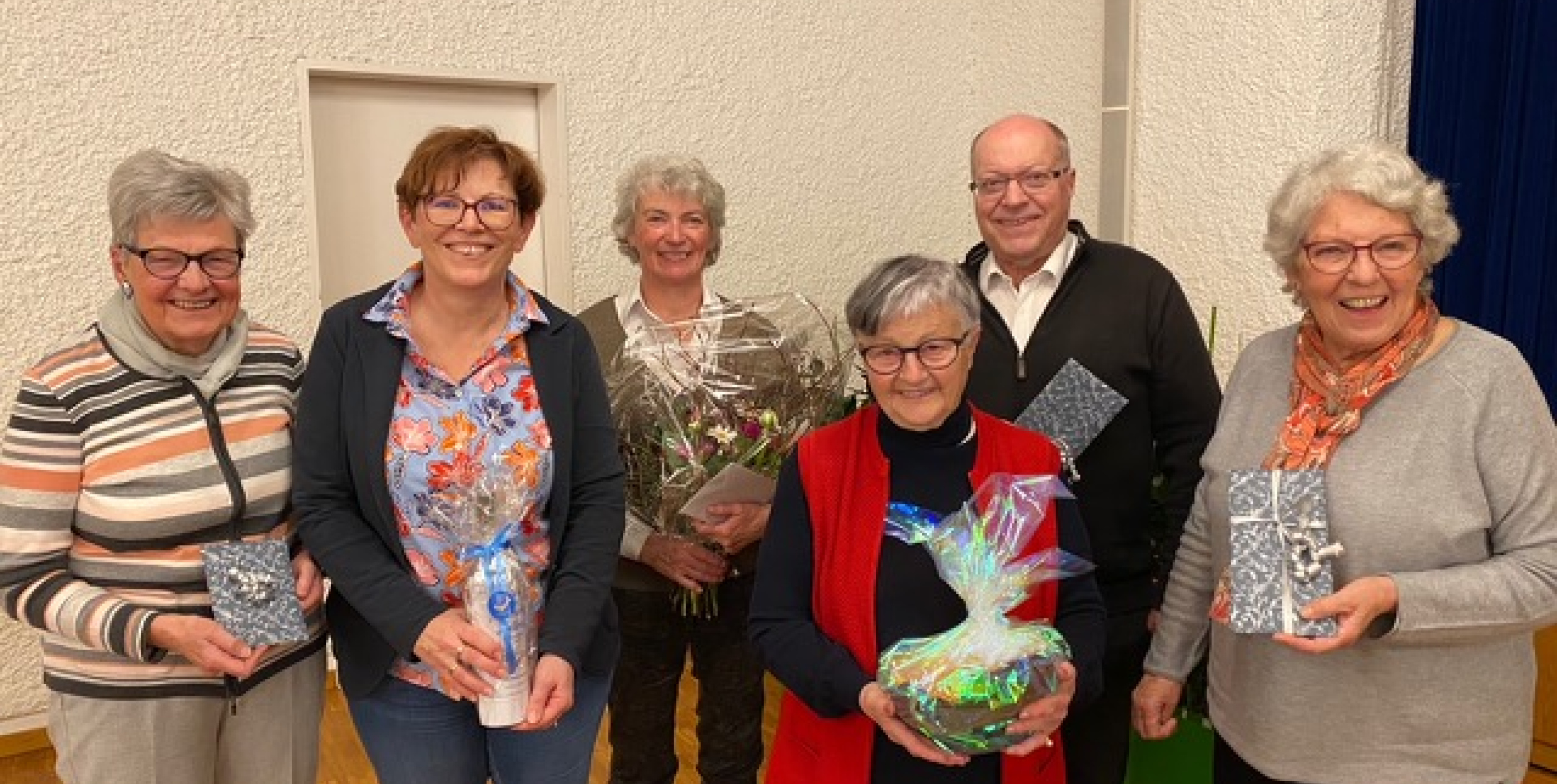 An dieser Hauptversammlung konnten Ehrungen für eine stattliche Anzahl Jahre vorgenommen werden: zwei Mal 10 Jahre Mitgliedschaft, einmal 25 Jahre Mitgliedschaft und dazu 20 Jahre Vizepräsidentin und dann weitere 30 und 40 Jahre Mitgliedschaft. Eine Sängerin aber übertrifft alle. Sie ist 50 Jahre Mitglied des Chores und seit 40 Jahren betreut sie gewissenhaft die Kasse.