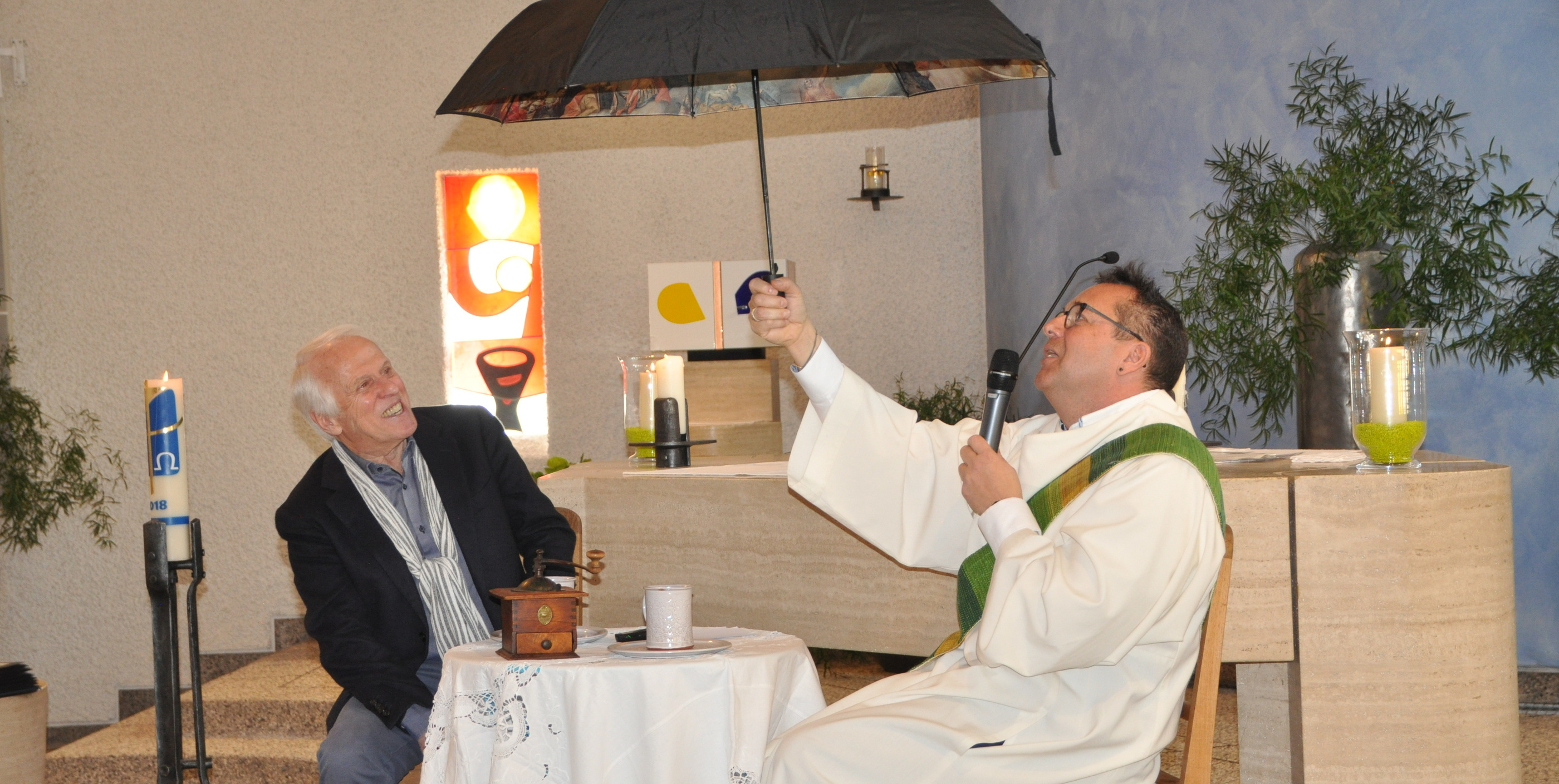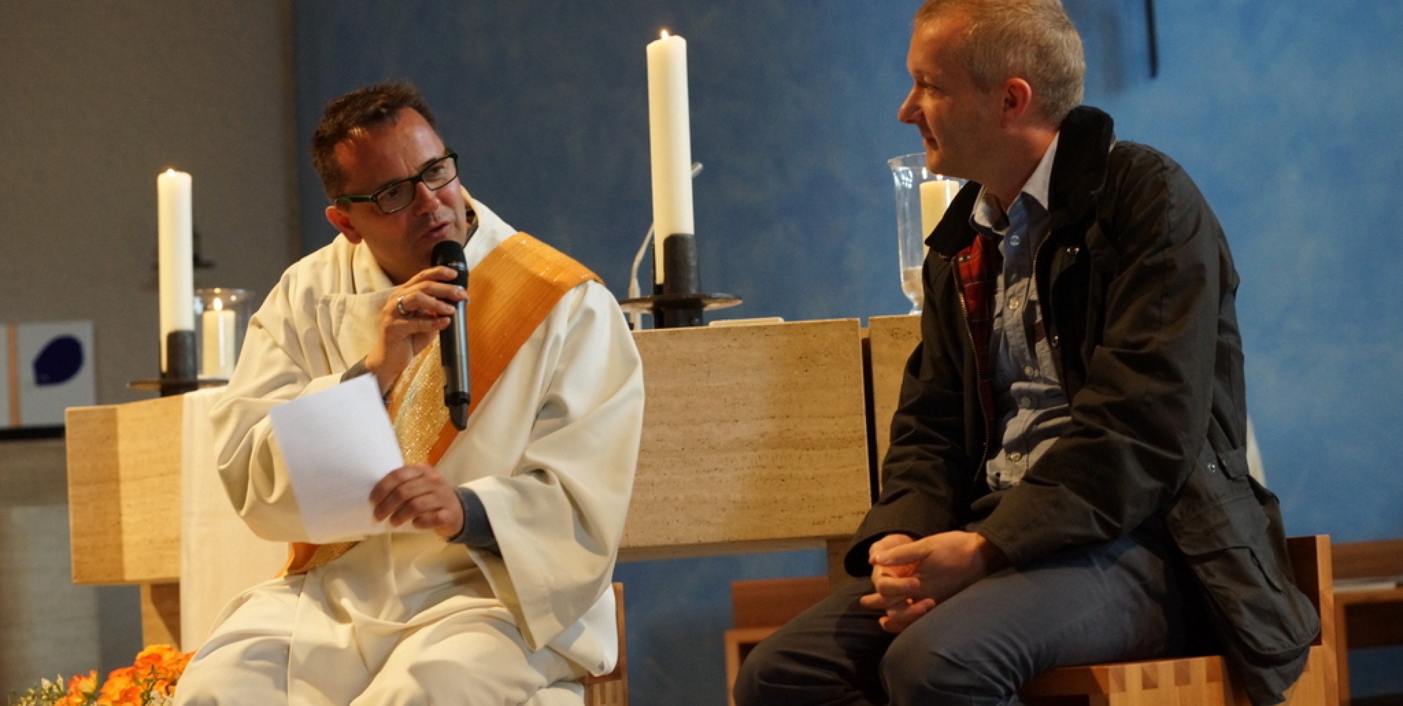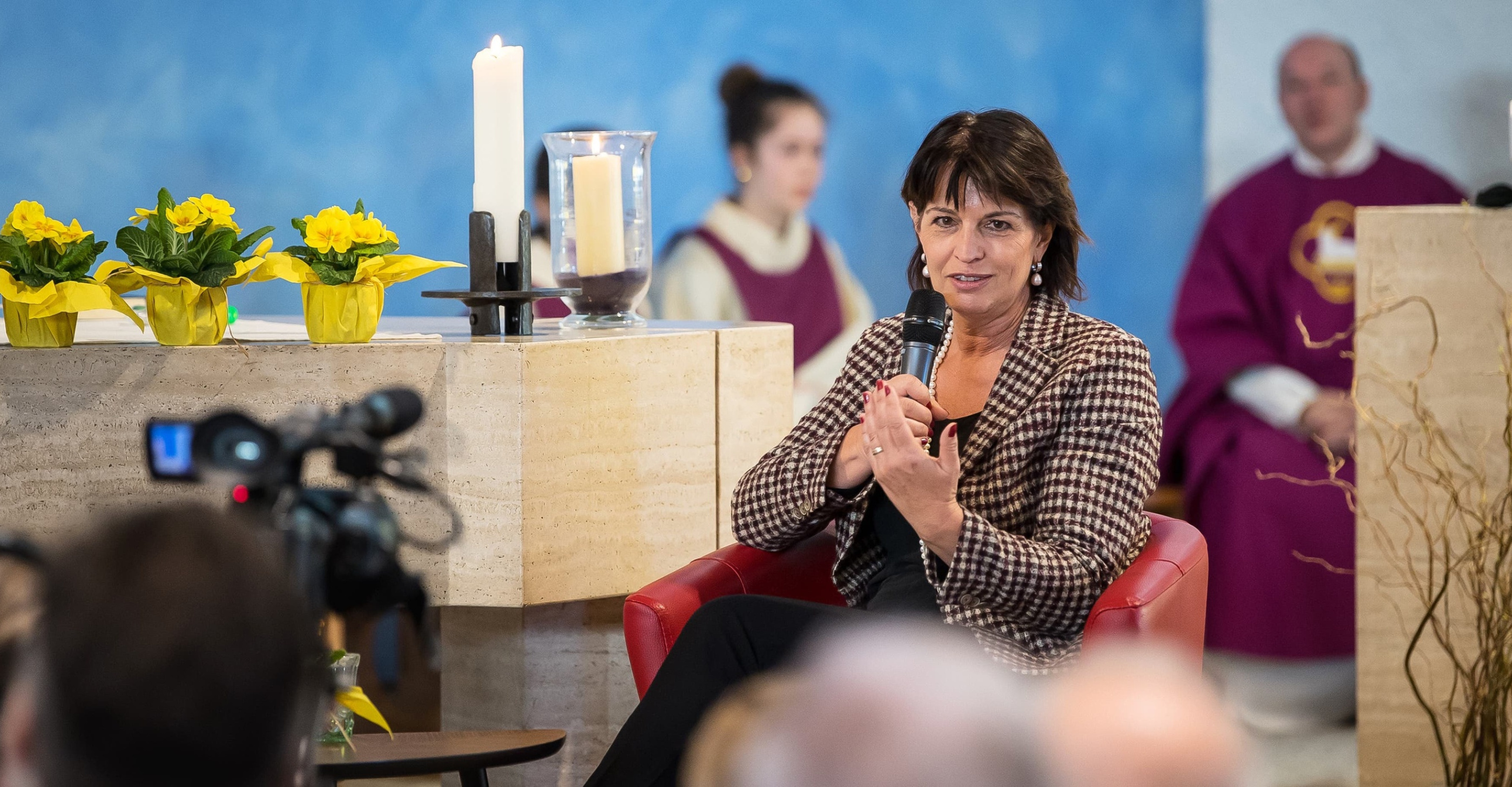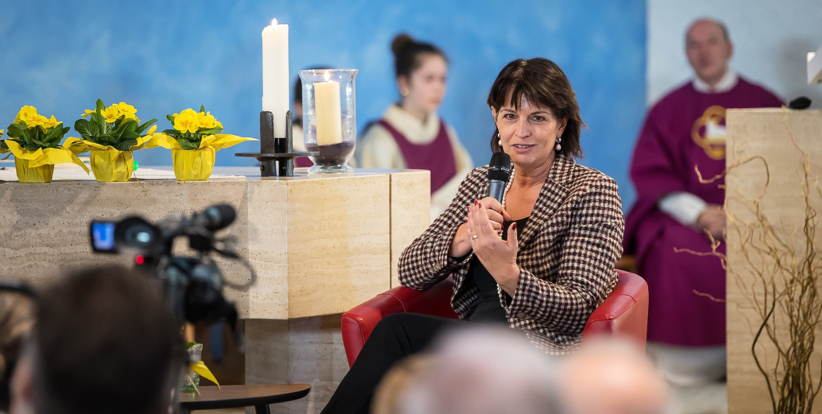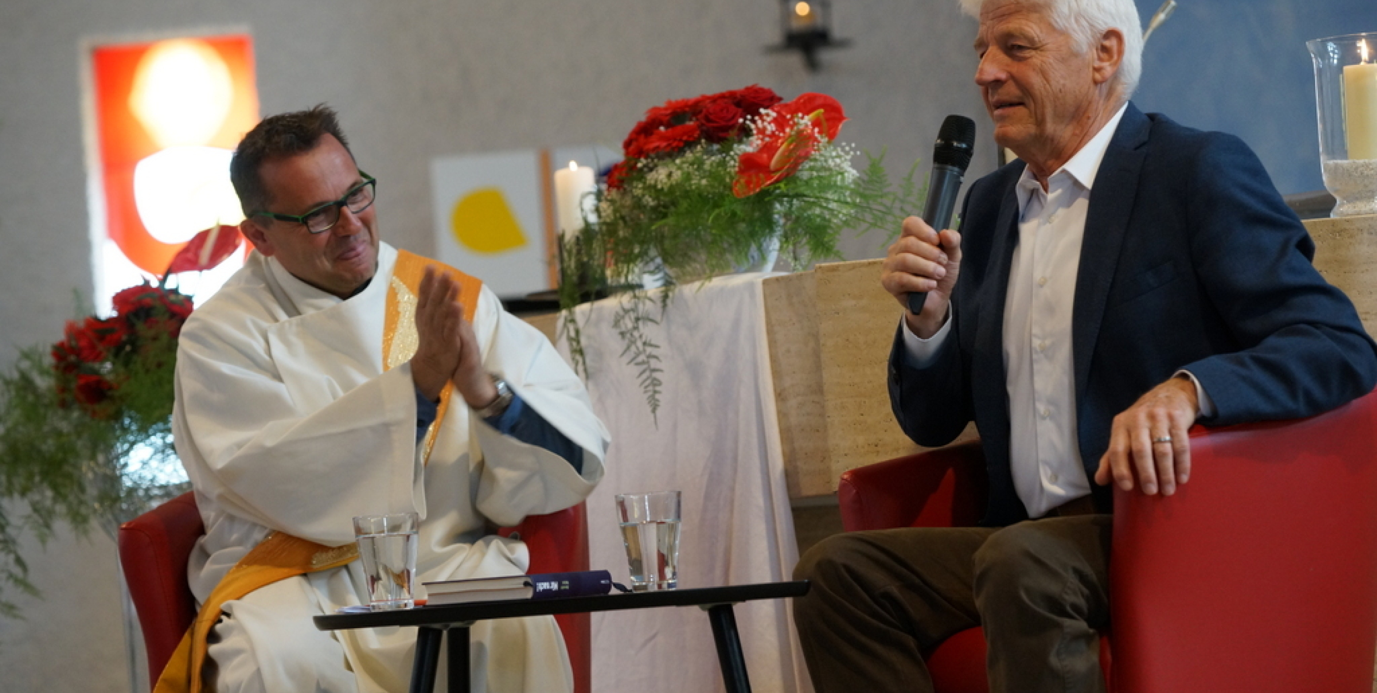 In der Predigtreihe "Gespräch an der Kanzel" stellen sich Persönlichkeiten aus dem öffentlichen Leben den Fragen von Diakon Stefan Staub zu Glaube, Welt, Kirche, Politik oder gesellschaftlichen Themen.