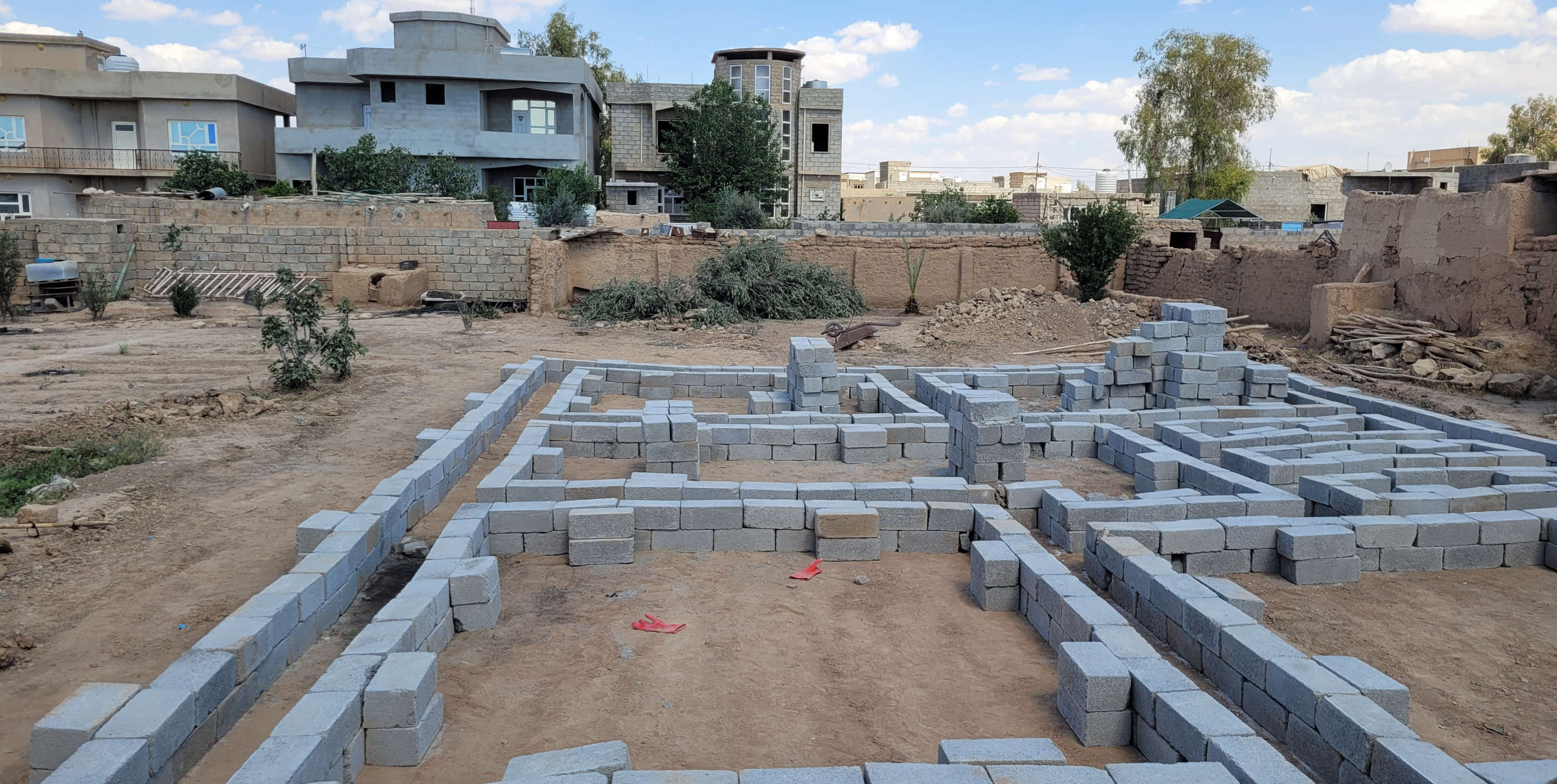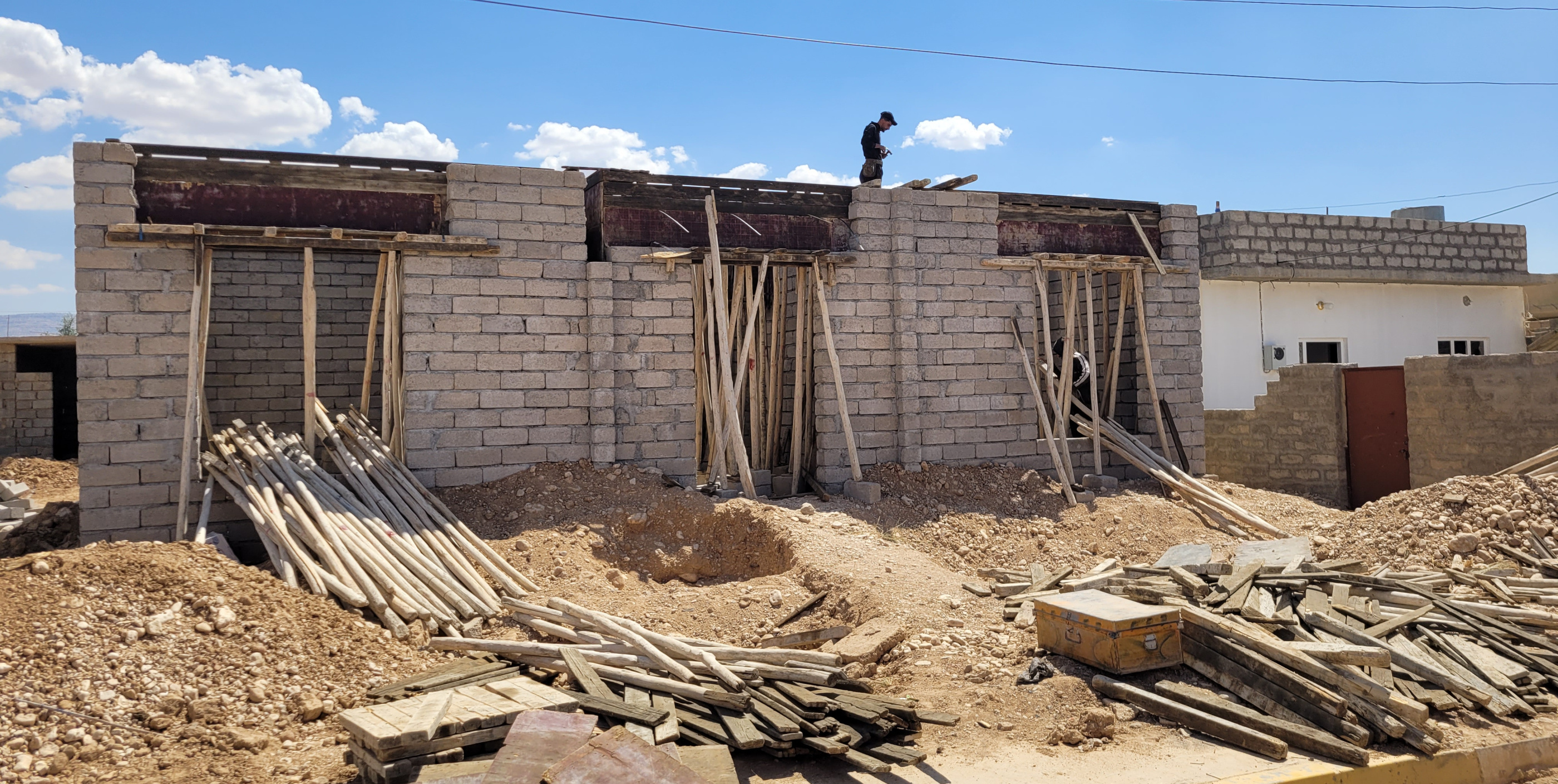 2024 konnten wir ein erstes Musterhaus (Prototyp) fertigstellen. Die Importe von Materialien aus Kurdistan in die Sindjarregion werden durch bürokratische Hürden an den Checkpoints erschwert.