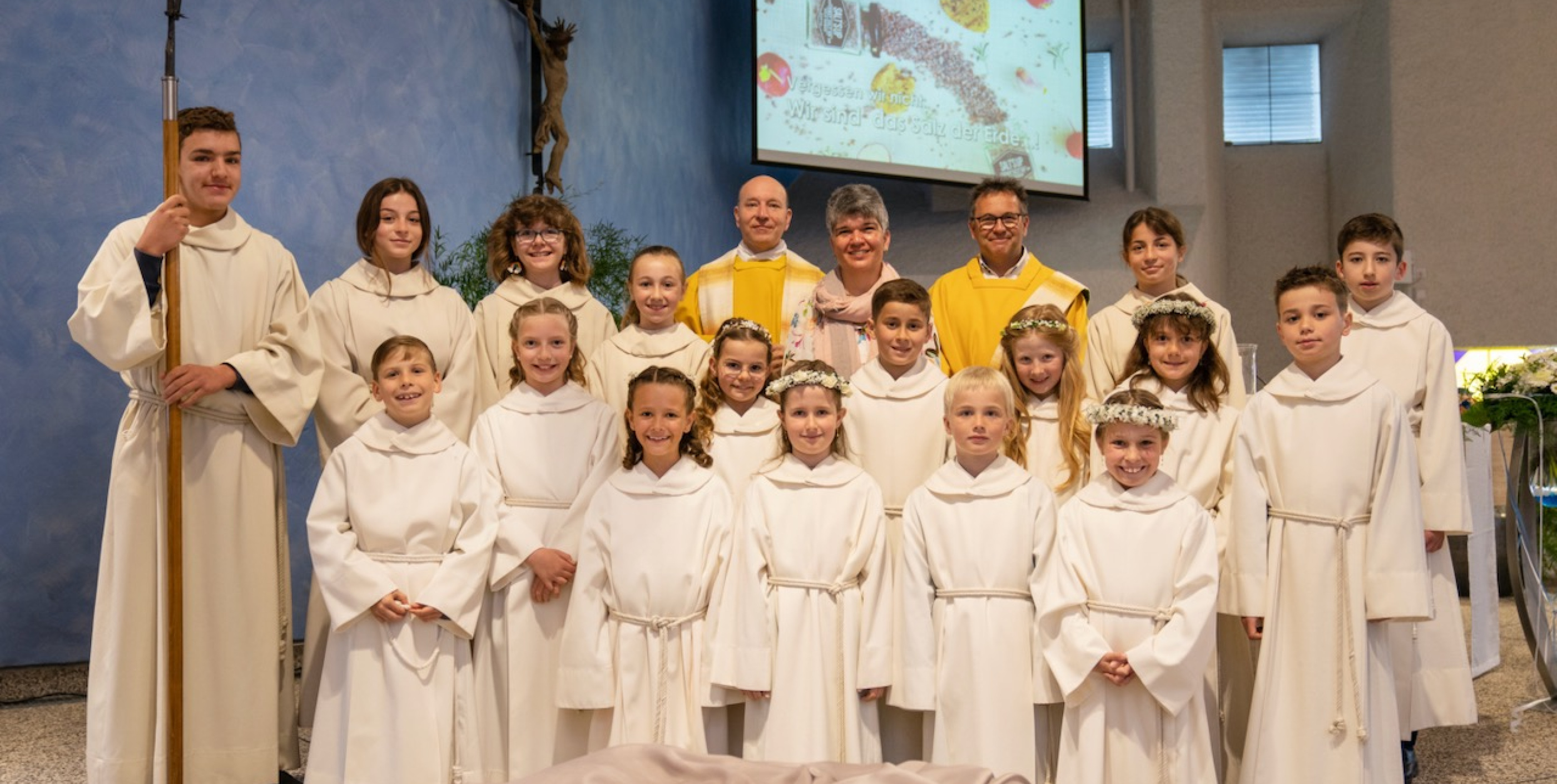 In insgesamt vier Feiern, verteilt auf Samstag und Sonntag, wurden die Erstkommunikantinnen und Erstkommunikanten aus Teufen und Niederteufen im Beisein ihrer Familien offiziell in unserer Pfarrei willkommen geheissen.