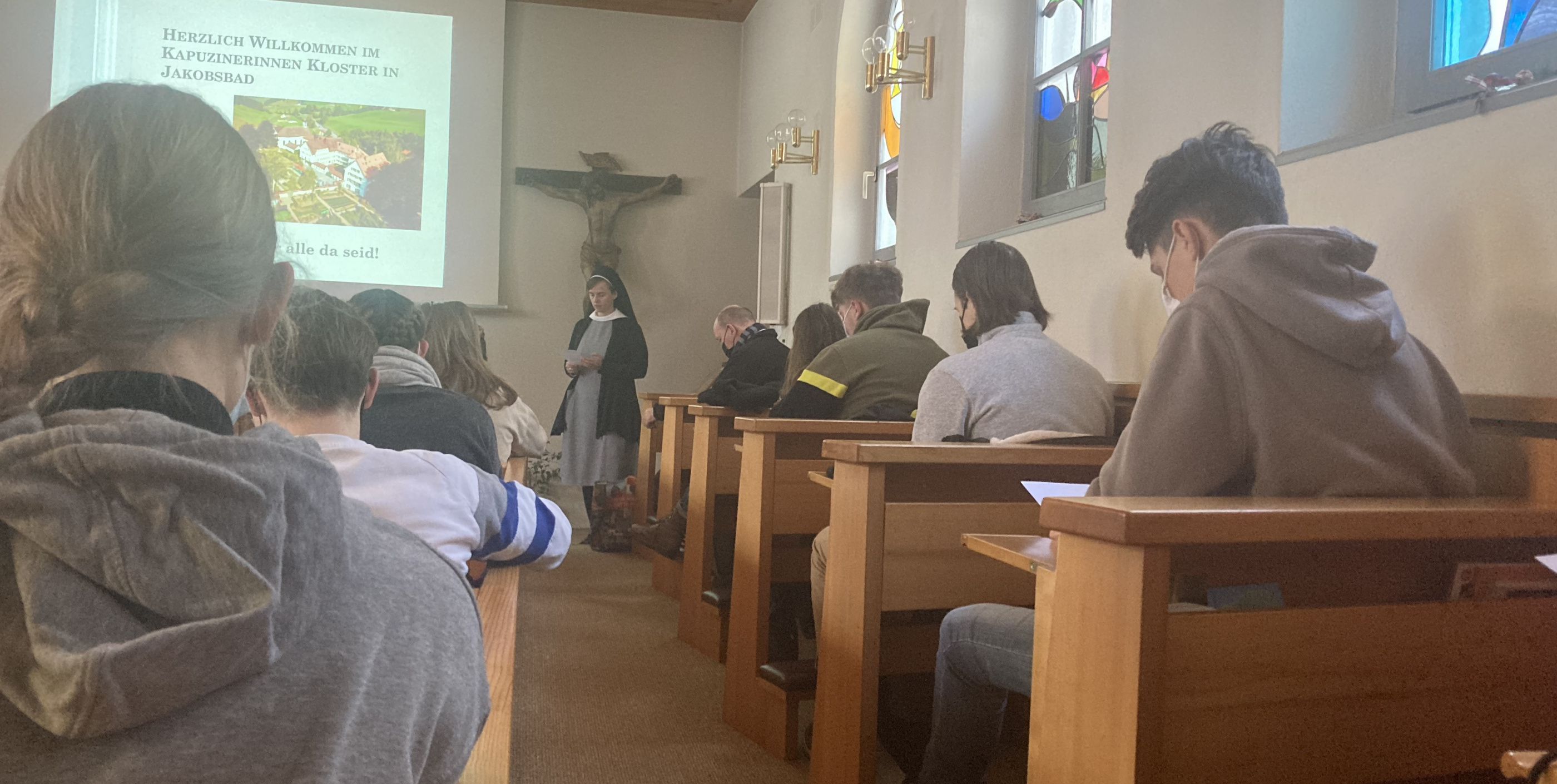 Es ist ein kalter Wintertag und unsere Firmand*innen stapfen durch den Schnee Richtung Kapuzinerinnenkloster in Jakobsbad. Eine junge Frau in Schwesternkleidung winkt ihnen strahlend entgegen. Coronakonform begrüsst sie unsere Jugendlichen und stellt sich mit «Ich bin Schwester Elisabeth» vor. Dann führt sie uns in die warme Klosterkirche.